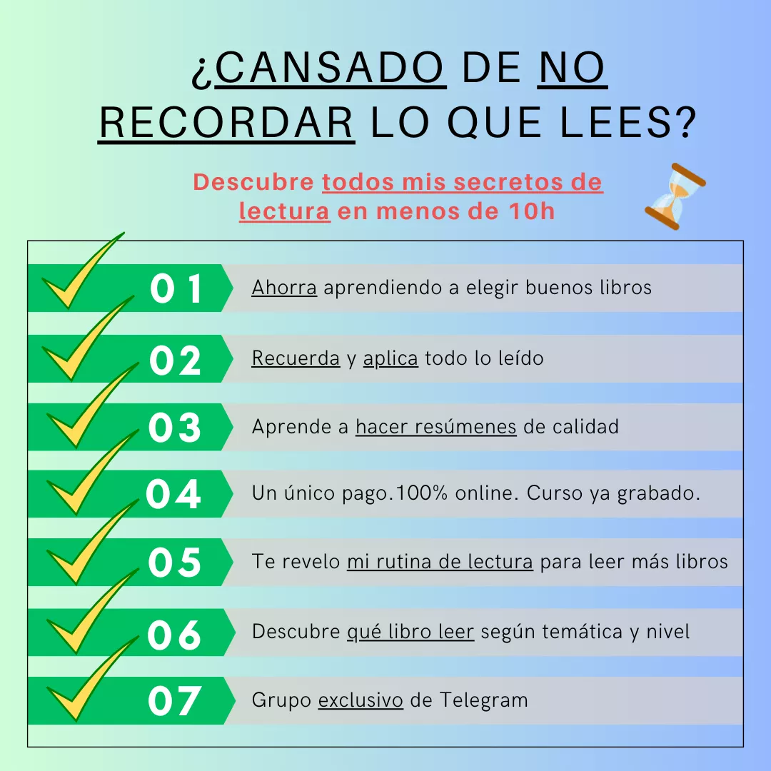 - Te enseñaré a cómo hacer resúmenes de calidad, con el objetivo de que puedas aplicar los conocimientos de los libros a tu vida.